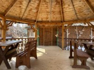 - одноэтажный корпус: два двухместных номера с отдельным входом со всеми удобствами. Есть возможность размещения дополнительного спального места. Стоимость домика 8000 руб/сутки,