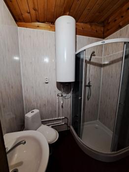 На втором этаже номер с санузлом без душа, две односпальные кровати, телевизор, прикроватные тумбы, столик, чайник, стаканы, вешалка, санузел без душа, раковина, зеркало. Душ расположен на улице в шаговой доступности. Возможность предоставления дополнительного места для ребенка (раскладушка).