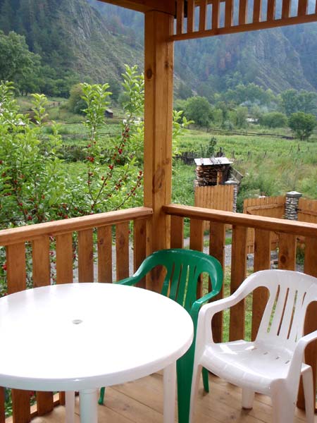 А место это красивое, прямо за участком начинается гора, на которую можно забраться по тропинке, в самой усадьбе фруктовые деревья: ранетки, сливы, груши, яблони, миндаль, виноград окружают гостевой и хозяйский дом.