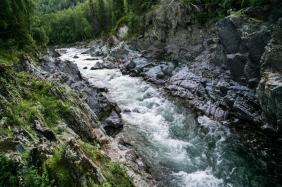 Дорога к "Девичьим плесам" была проложена еще до революции. Она вела к железорудным рудникам в верховьях Кумира. Если подняться по правому берегу Кумира вверх по течению от "Девичьих плесов", можно увидеть ржавый трос и вагонетку остатки старой канатной дороги, служившей переправой на левый берег, к заброшенному ныне руднику.