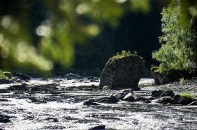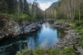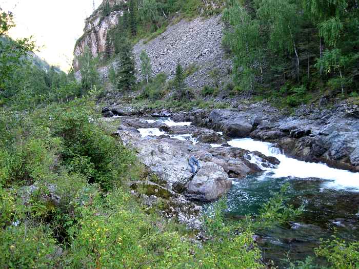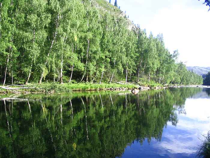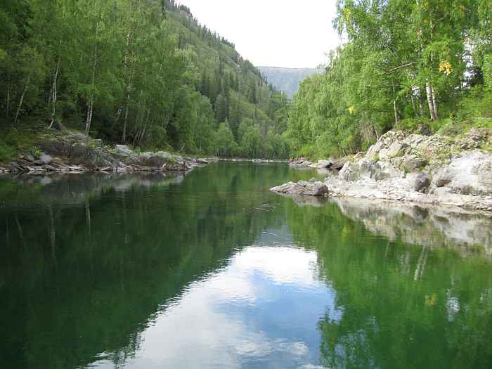Интересен контраст между бурлящим порогом Девичьи плесы и этой гладью.