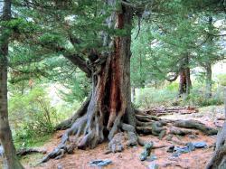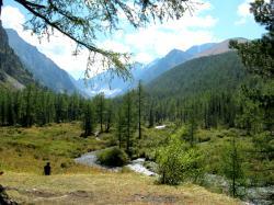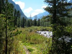 Перед водопадом Куйгук, который срывается вниз из Нижнего Куйгукского озера, есть хорошие стоянки на поляне с вековыми кедрами.