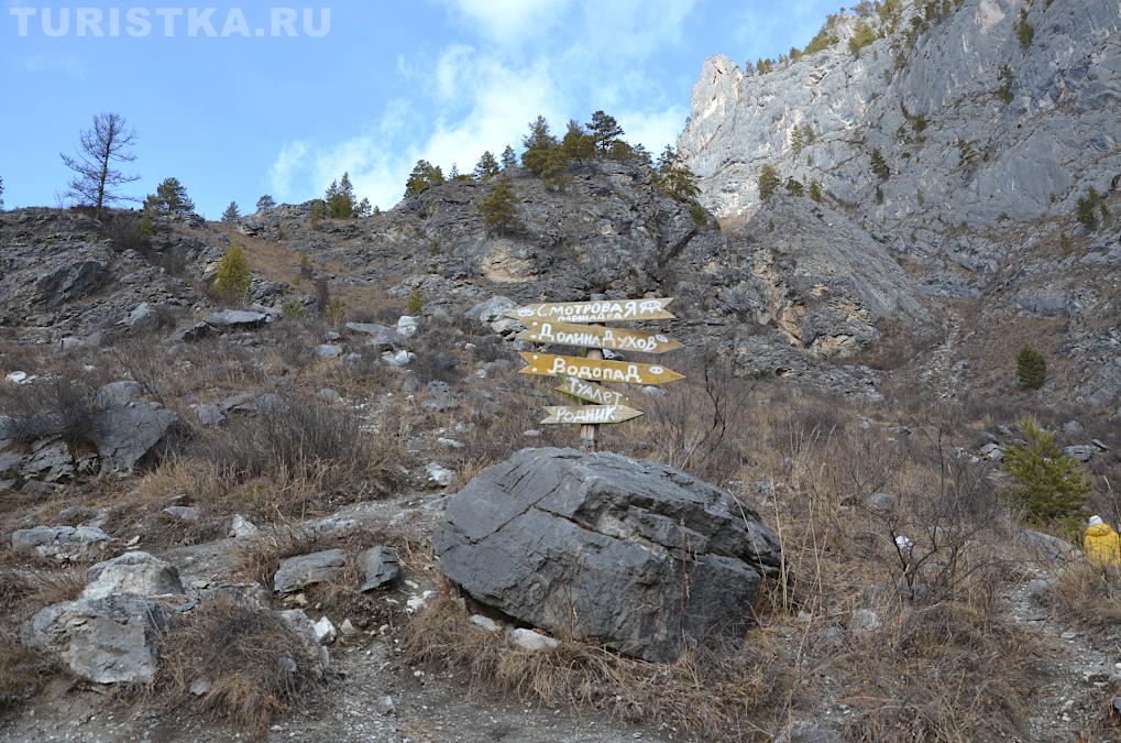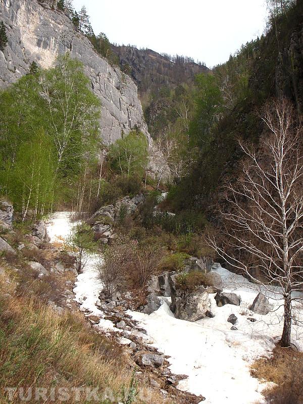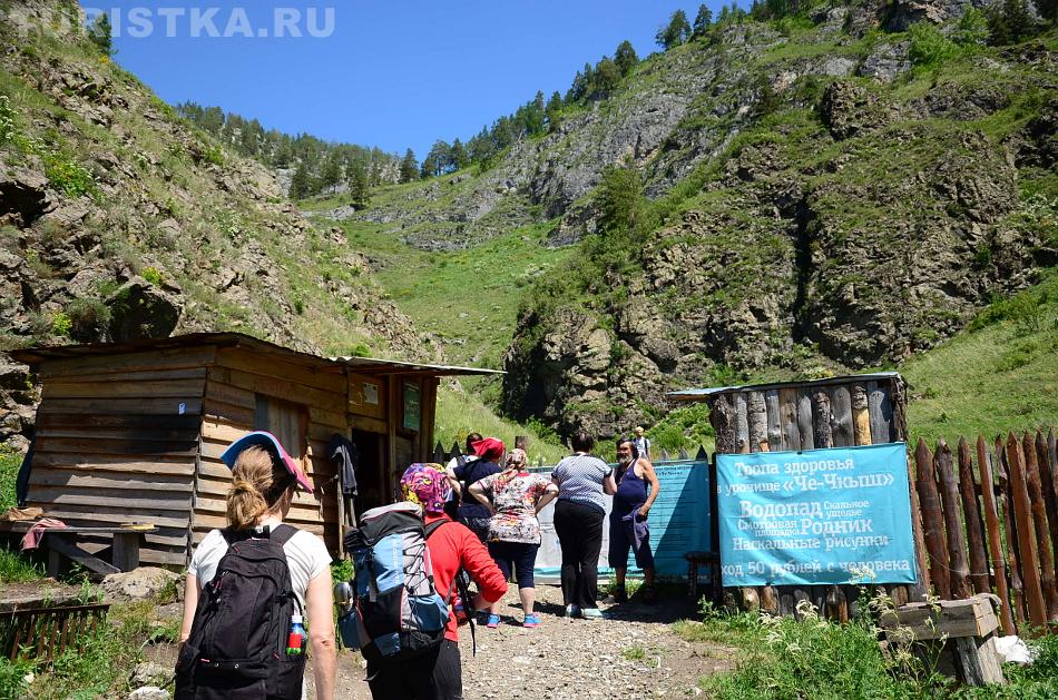 На входе в ущелье надо заплатить на 2025 г. 200 руб. Затем вы начинаете подъем по живописной тропе, рядом с которой журчит небольшая веселая речка. Эта речка немного выше и образует водопад. С верхней точки тропы можно, оглянувшись назад, увидеть Чемальский тракт. На тропе есть беседки, туалет.