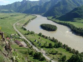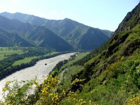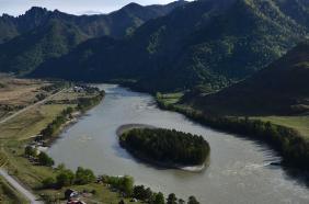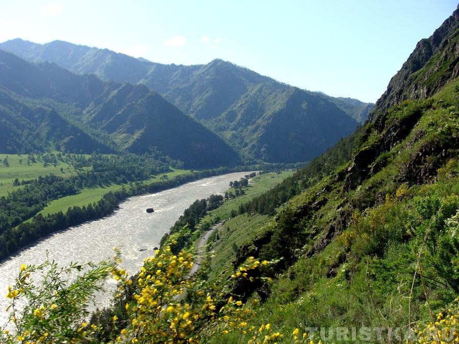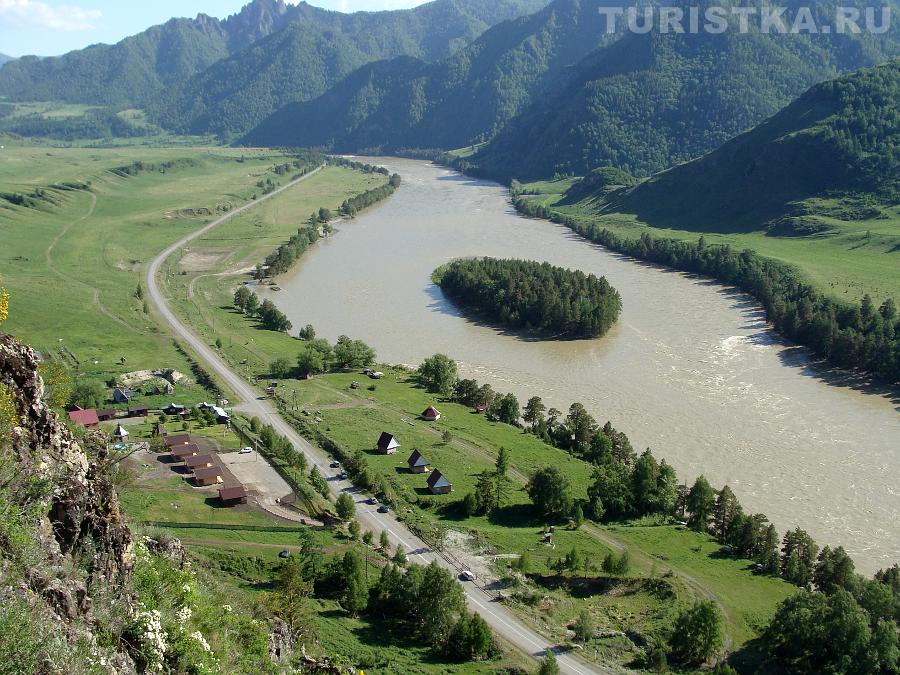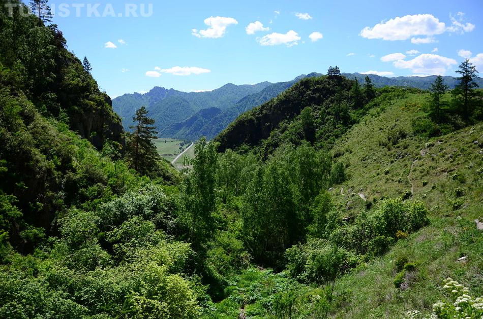 Искупавшись в водопаде, а затем, побывав в каменном ущелье и таинственной Долине духов, можно вернуться назад, попрощаться с водопадом и подняться на смотровую площадку, с которой открывается вид на Катунскую долину. На площадке стоит широкая удобная скамейка. Тут можно расположиться всей семьей, передохнуть и полюбоваться на замечательную панораму. Внизу протекает Катунь, видно Чемальский тракт, урочище Чечкыш. За рекой расстилается предгорье, покрытое зеленым ковром. Здесь можно увидеть всего лишь кусочек огромного тела Земли и ощутить ее силу и мощь!