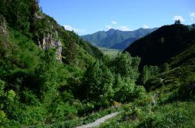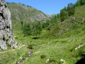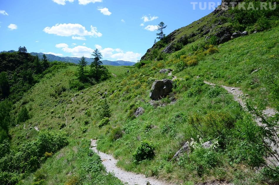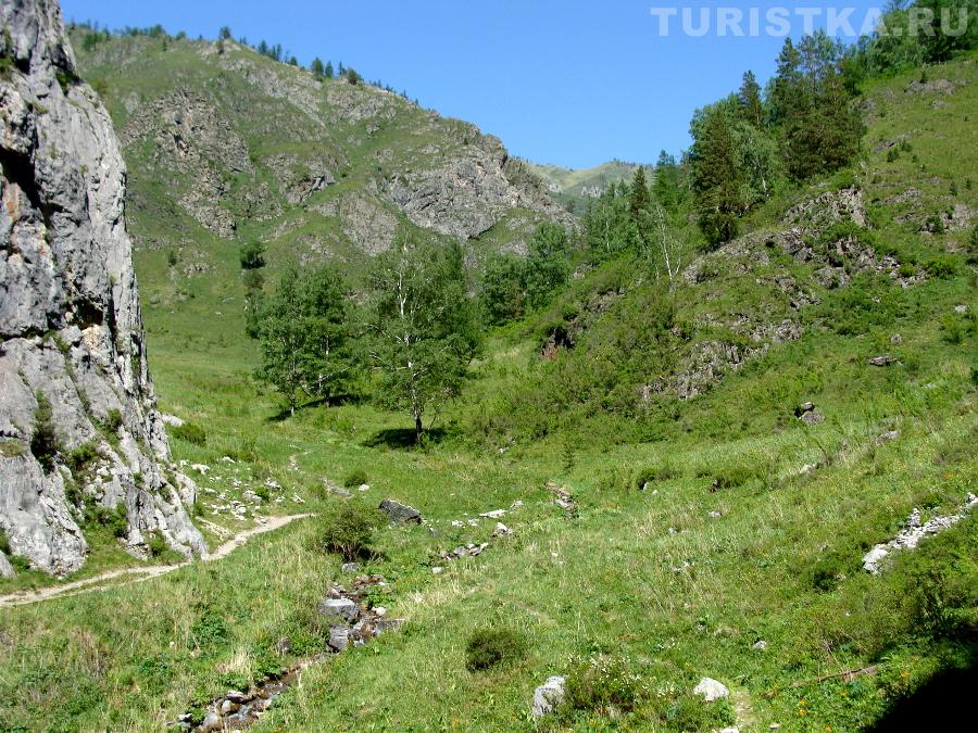 Еще выше по тропинке, скалы расступаются и выходишь на широкую долину. Местные жители говорят, что до революции в этой долине жило одно из алтайских племен, а потом их согнали вниз.
