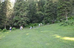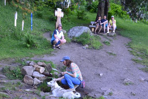 въезжаете в Артыбаш, справа остается мост через Бию, потом справа будет галерея "Легенды Алтын-Кёль", дальше справа первый пирс, затем дорога приближается к озеру. Слева от дороги ищете магазин "Селена", около него поворот в сторону леса, доезжаете до Серебряной улицы, поднимаетесь в гору и увидите слева к вашей дороге подходит еще одна. Вам надо повернуть на эту левую дорогу и по ней вы доедете до поляны с серебряным источником. Затем по натоптанной дорожке направо и в гору.