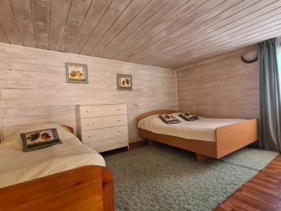 Интерьер: на первом этаже расположена гостиная, кухня, санузел (WC, душ). На втором этаже расположены две комнаты. В каждой комнате двухспальная кровать и софа, комод, тумбочка, зеркало.