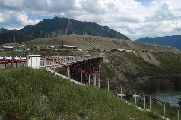 Чуйскому тракту. Въезжая в село по железобетонному мосту через Катунь, обратите внимание на старый