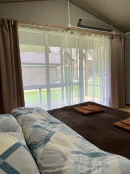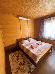 - Спальня: большая двухместная кровать, прикроватные тумбы, зона гардеробной, телевизор (спутниковое TV), инфракрасный обогреватель, журнальный столик, холодильник, чайник, чайный набор.