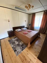 - Спальня: большая двухместная деревянная кровать, прикроватные тумбы, этажерка, инфракрасный обогреватель.