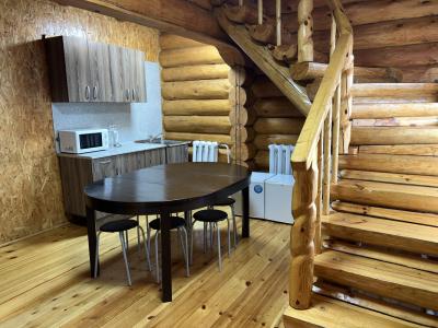 Расположение: двухэтажный коттедж из бревна ручной рубки на два номера. Удобно для большой компании с детьми.