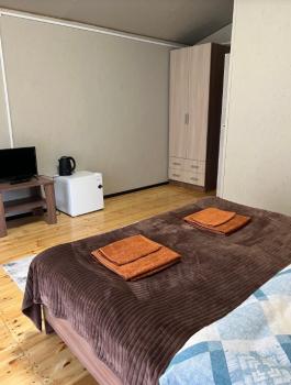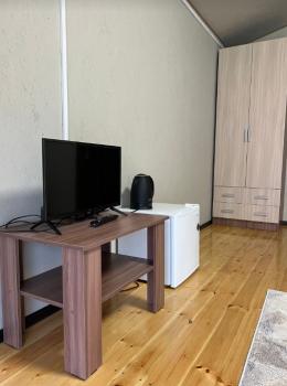 - Спальня: кровать, прикроватные тумбочки, журнальный столик, две банкетки, телевизор (спутниковое TV), холодильник, электрический чайник, чайный набор, инфракрасный обогреватель.