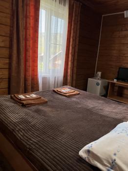 Очень классное место для отдыха! Еда супер, завтраки включены очень удобно и завтрак не просто каша, а шведский стол:каша, колбаса разная, яйца вареные, сыр, сосиски, блины, оладушки, берёшь сколько надо. Персонал вежливый, все очень отзывчивые. Номер у нас был отдельный домик, все чисто, одеяло просто любовь , были с 2 детьми поставили 2 раскладушки. Единственный минус и за это сняла звезду это отсутствие забора перед речкой горной! Там не пологий берег, а обрыв, небольшой но все же обрыв , то есть ребенок может просто бежать и туда слететь, а там камни здоровые и течение сильное, у всех соседей забор есть , поэтому это напрягло очень сильно переживали за детей. А так на территории площадка детская, бассейн и большой и маленький