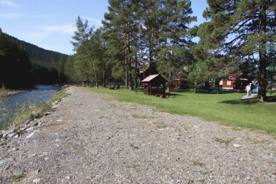 Мы находимся в Шебалинском районе Республики Алтай, в Камлакской долине, на берегу реки Сема, в сосновом бору.