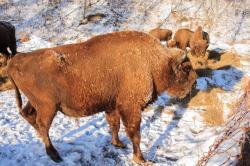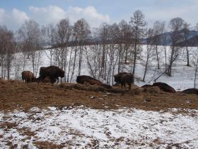 Зубры лесные жители, их рацион кроме большого количеств трав включает кору кустарников и деревьев (осины, ивы, рябины, караганы и др.)