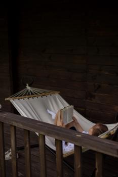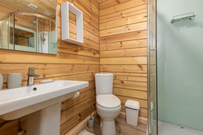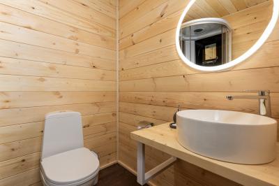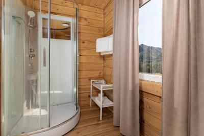 Вместимость: 2 основных места, 1 дополнительное. Отдельно стоящий деревянный домик с двумя террасами. Спальная комната: двуспальная кровать, прикроватные тумбы, раскладное кресло. Обеденная зона: стол со стульями, холодильник и чайник, набор посуды. Туалетная комната: wc, раковина для умывания, душевая кабина, набор полотенец, индивидуальный гигиенический набор, фен, халат.