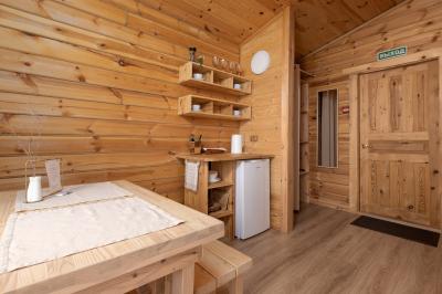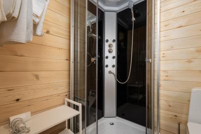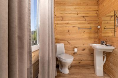 Вместимость: 2 основных места, 1 дополнительное. Отдельно стоящий деревянный домик с террасой. Спальная комната: двуспальная кровать, прикроватные тумбы. В номере есть холодильник и чайник, набор посуды. Туалетная комната: wc, раковина для умывания, душевая кабина, набор полотенец, индивидуальный гигиенический набор, фен, халат.