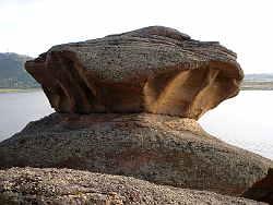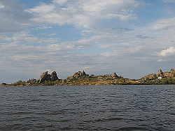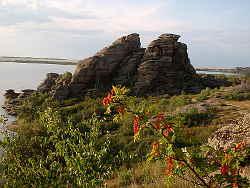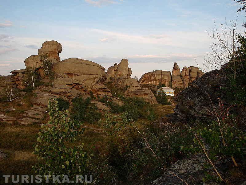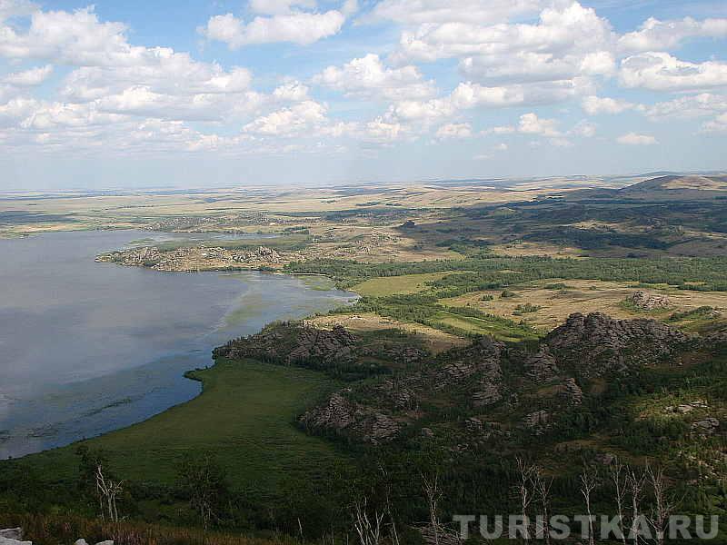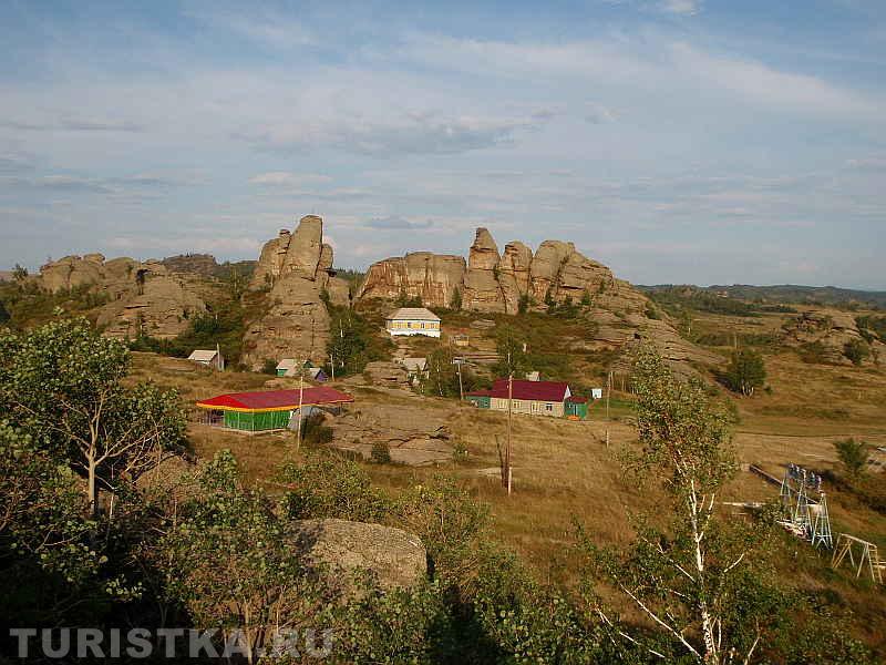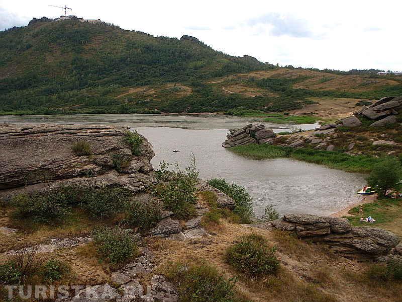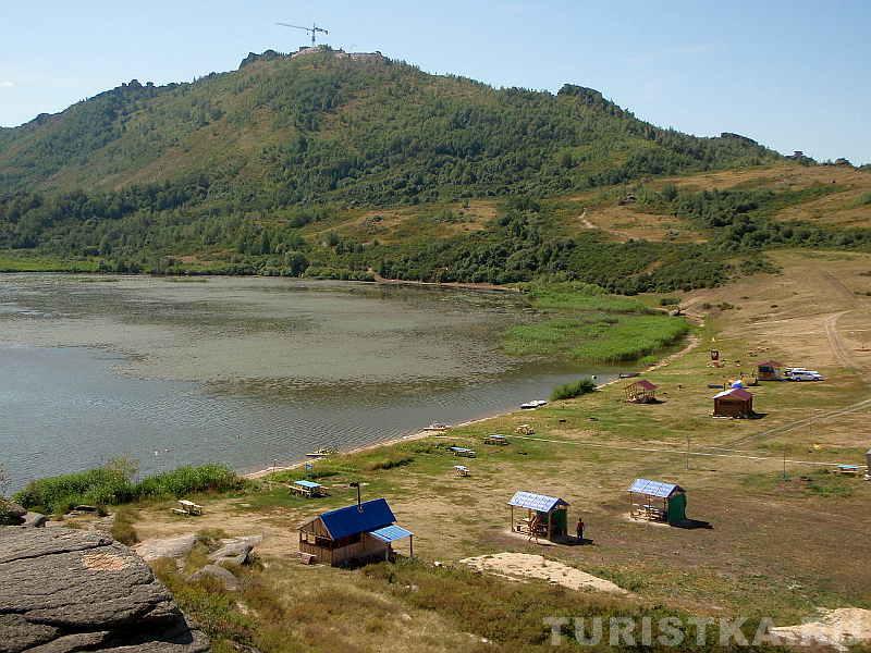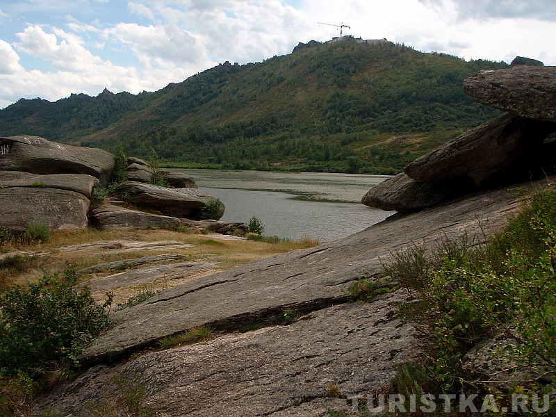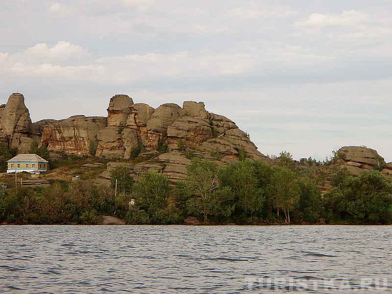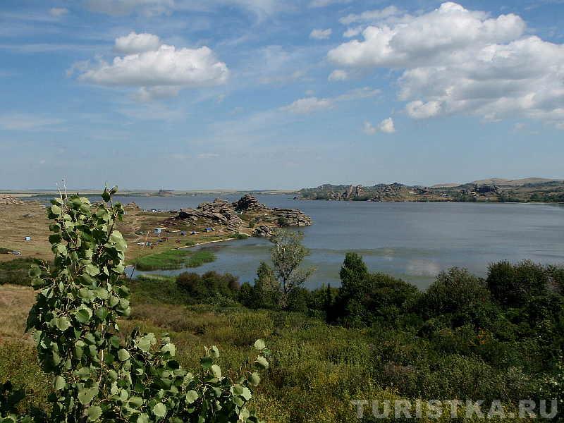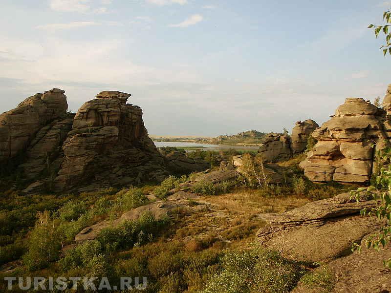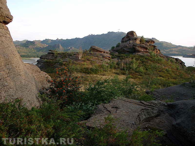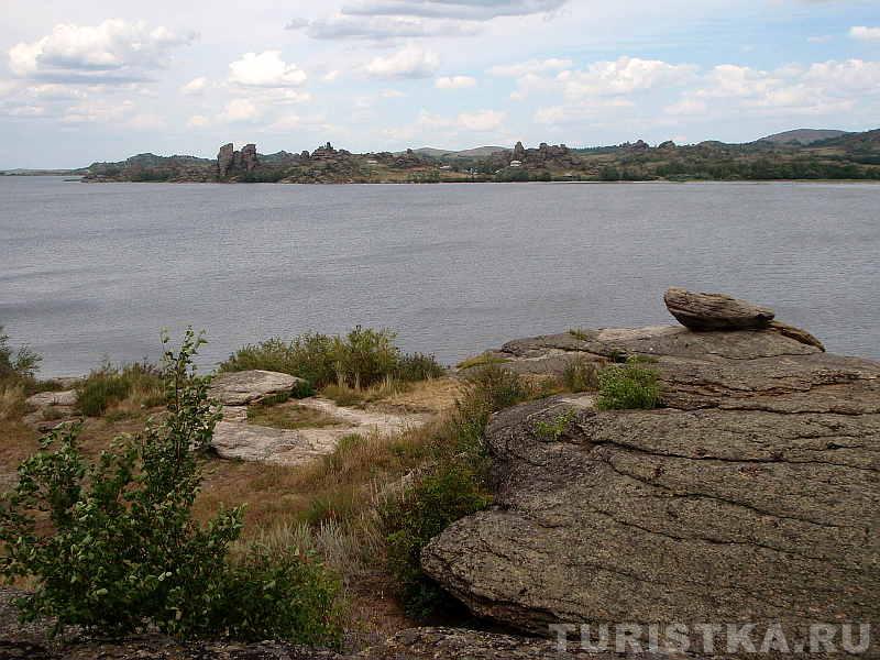Чтобы посмотреть побольше скал-останцев, лучше переехать, например, на резиновой лодке, на восточный берег, где можно нырять, обследовав предварительно дно. На восточном берегу озера, около скал "Четыре брата" и "Слон", находится детский оздоровительный лагерь "Чайка".