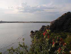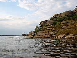 Наиболее пригодно для купания с детьми северо-западное побережье, ближнее к селу Саввушка. Здесь набор глубины идет очень постепенно. Если ехать от с. Саввушки мимо обсерватории (оптико-лазерного центра), то выезжаешь к красивым берегам, на которых расположены несколько баз отдыха с чистыми пляжами, туалетами. Места симпатичные, пляжи обрамлены невысокими скалами с мягкими очертаниями. По скалам любят лазать и дети и взрослые. На базах можно остановиться в деревянном домике или в палатке. Примерно это стоит 140 руб/чел в сутки + 50 руб с палатки, в домике цены другие. Как на всяких базах здесь бывает довольно шумно. Можно проехать дальше налево к "диким пляжам" и поставить палатку. Но на "диких пляжах" уже нет скал, а есть мусор на берегу.