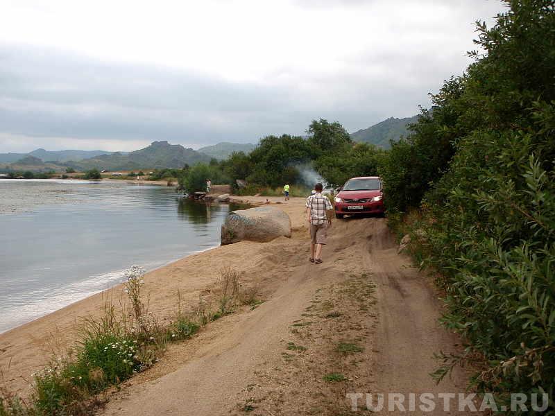 Многие приезжие сворачивают к озеру Саввушки, не доезжая до села, налево по указателю Лагерь "Чайка". По этой дороге доедешь до северного края озера и дальше можно выбрать восточный или западный берег. Вдоль западного берега идет грунтовая, песчаная дорога, местами бывают топкие участки. К озеру есть несколько поворотов от трассы, но только местные жители и те, кто часто ездит сюда знают, по какому можно проехать, чтобы машина не села в топь. Так что если едите первый раз, то лучше добраться до с. Саввушки и от него свернуть по хорошей дороге к озеру.