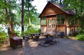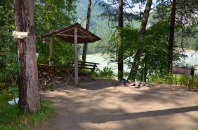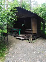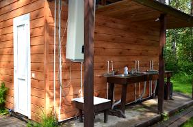 Стоянки оборудованы беседкой (подведено электричество), костровищем. На территории благоустроенный туалет, душ.