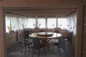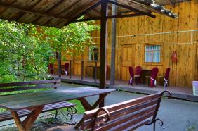 Оборудованы 2 беседки, мангал, костровище, терраса. На терассе есть столы и стулья.