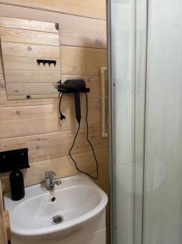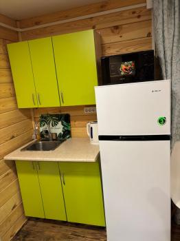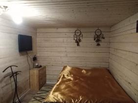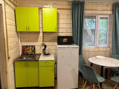 I этаж: 2-спальная кровать, кресло-кровать, стол, стулья, пенал для белья, Wi-Fi, TV, тумбочка. Мини кухня с посудой, холодильник, микроволновка, чайник. Инфракрасный обогреватель. Туалетная комната: WC, раковина, душевая кабина, фен.