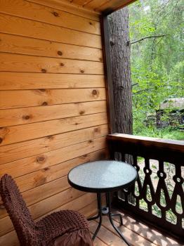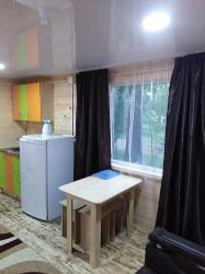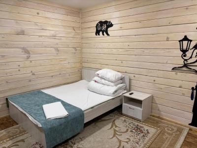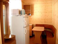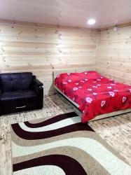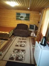 Номера с качественной мебелью — двуспальной кроватью, тахтой, столиком, стульями, ковровыми дорожками, холодильником. Чайник можно взять напрокат у администратора. Удобства на территории.