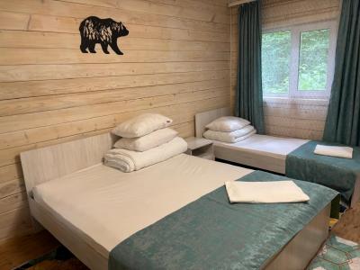 Отдельно стоящий корпус. В корпусе пять номеров по 4 места в номере.