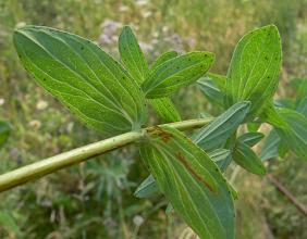 - Видовое определение perforatum (продырявленный) дано виду из-за мелких листьев с рассеянными по пластинке просвечивающимися железками. Если сорвать листик растения и рассмотреть его на свет, то видно, что вся поверхность листа испещрена мелкими светлыми точками, на первый взгляд похожими на крохотные отверстия, будто лист во многих местах пронзен тонкими иглами. Объясняется это тем, что в ткани листа разбросаны эфирномасличные железки, свободно пропускающие свет.