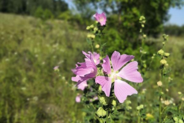 - Алтей лекарственный — неприхотливый многолетник с нежно-розовыми или белыми цветками, идеально подходящий для создания "природных" садов, миксбордеров и маскировки хозяйственных зон.