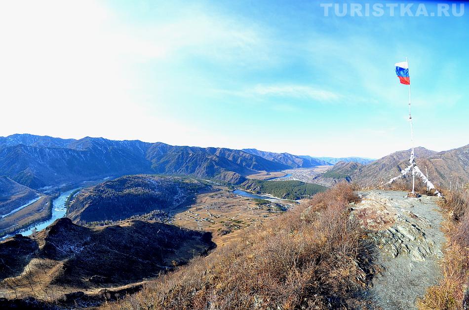 На вершине горы Верблюд, вид на реку Катунь, Чемальское водохранилище, село Чемал
