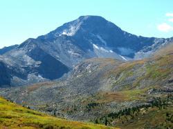 Путь от р. Акчан к озеру Кыргыз, вид на гору Колбан