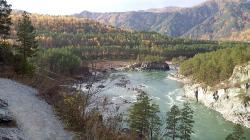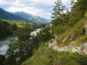 Вид с Козьей тропы на Катунь, которая течет в Воротах Сартакпая