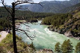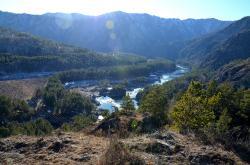 Вид с горы Бешпек, над Козьей тропой, на Катунь, текущую к Воротам Сартакпая