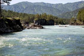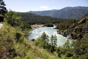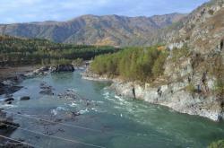 Вид на Ворота Сартакпая, в которых течет Катунь