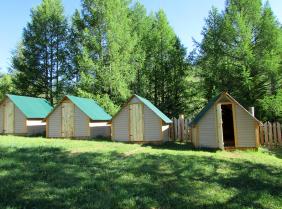 Территория Кедровой опушки, слева под красной крышей - 2-этажный Кедровый дом