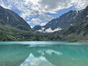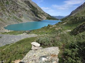Подходим к Верхнему Куйгукскому озеру от перевала Куйгук