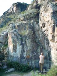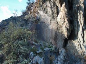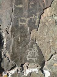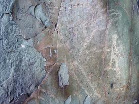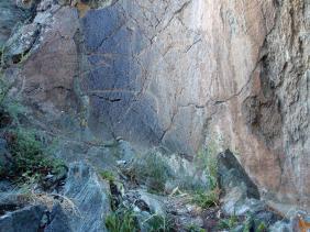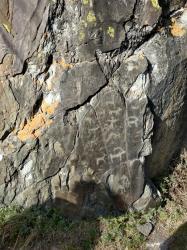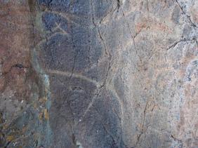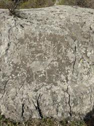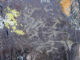 На гладкой скале большой петроглиф Маралихи с мараленком внутри
