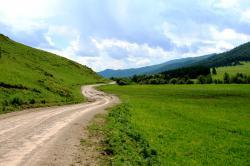 К слову, бронировали мы эту базу в начале мая на июньские праздники. Номер нам достался последний, стоимость его была около 2000 р/сутки. Трасса от Белокурихи с каждым километром поднимается все выше вдоль полей и лугов Смоленского района. Вскоре асфальтированную дорогу сменяет хорошая грунтовка, дорога проходит по холмам и взгорьям, петляя между небольшими деревнями.