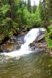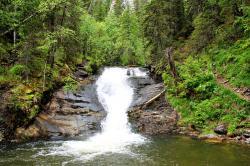 Водопад «Двойной прыжок» или «Йог» вода обрушивается с высоты 28 м в два приема между ровными скалами.