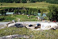 Надо поспать, ищем место на обочине, а негде. Так и проехали еще километров 20 до стоянки перед подъемом на Семинский перевал. Там остановились поспать, там стояло штук 5 КАМАЗов. Уже светло. И спать что-то не хочется. Так никто и не уснул. Минут через 30 приехал микроавтобус и поехали дальше.