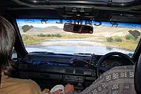 В 2 или 3 местах были броды. Глубина примерно пол колеса. Держаться надо в сторону холмов, на которых есть триангуляционный столб, по карте на нем высота 1784 м. мы проехали этот столб слева от него. Потом попался оросительный канал (забетонированный), переехали через него, и тут начинает уже портиться дорога. Скоро начался лес, и дорога совсем испортилась. Потом будет небольшой подъем, на котором много больших камней. Дорога здесь раздваивается, мы ехали по левой полосе. И выехали на небольшой гребень. Далее небольшой спуск и вот она перевалка. От оросительного канала примерно метров 500 не более. От 826 км на тракте ехать до перевалки 24 км. Ехать около часа.