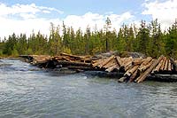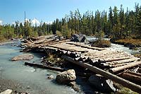 Последнюю часть моста недавно смыло, бревна-то положили назад, но просто так накидали, пройти можно только пешком.