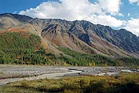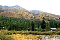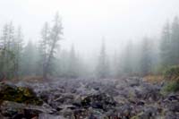Здесь замечательное место необычный лес: лиственница, камни, немного кустов, карликовая березка. Здесь не так сурово как на Мажое.