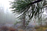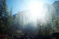 Вышло солнце и лиственница, покрытая вся каплями воды стала словно покрытая снегом. Все стало белым. Невероятно.