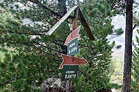 На другом берегу вышли на тропу. Там попался вот такой указатель на ледники. Потом пошел немного дождик, но скоро закончился. Встретили спортивную семеку с ребенком, они ходили до Голубого озера.
