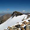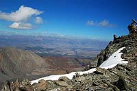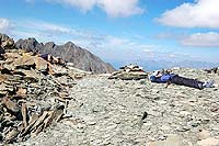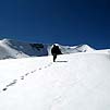 Потом снимаем кошки, небольшая, но очень противная сыпуха, и далее по плато (оно засыпано снегом) просто ногами до начала подъема собственно на вершину совсем недолго, может, минут 10 (боюсь, тут уже со временем у меня проблемы, но от места, где сошли с ледника и сняли кошки до вершины чистого времени шли где-то часа полтора. По пути обедали, только все было очень медленно).