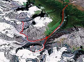 ![]() Карта маршрута. Хребтовка Северо-Чуйского. | ![]() Карта маршрута. Вид из космоса. |