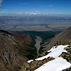 Поели и быстрее дальше едем. Наконец-то в районе 796 км показались заснеженные горы. Это всегда впечатляет после 300 км обычных гор. Снега.... Ура...
